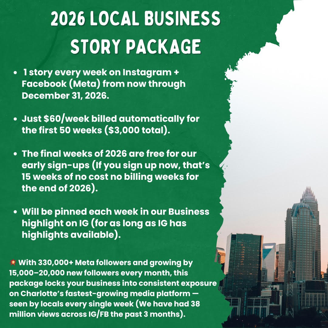 Email CLTGuide@gmail.com to be included in newsletter (or if you want dedicated newsletter advertising options) 5,000+ subscribers with 50% open rate!