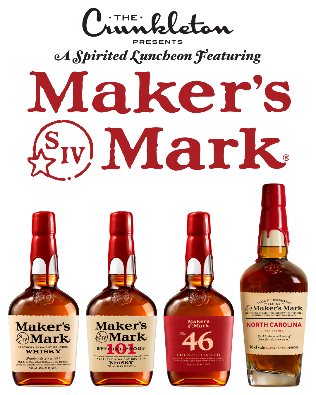 Join The Crunkleton for A Spirited Luncheon with Maker’s Mark. Start your afternoon off with a Maker’s Mark welcome cocktail, followed by a guided Maker’s Mark tasting led by John McLaughlin (Maker’s Mark Diplomat). Finally, enjoy a wonderful lunch prepared by Chefs Karl Christensen & Tom Willoughby, paired with a cocktail crafted by Tyler Dacaret.