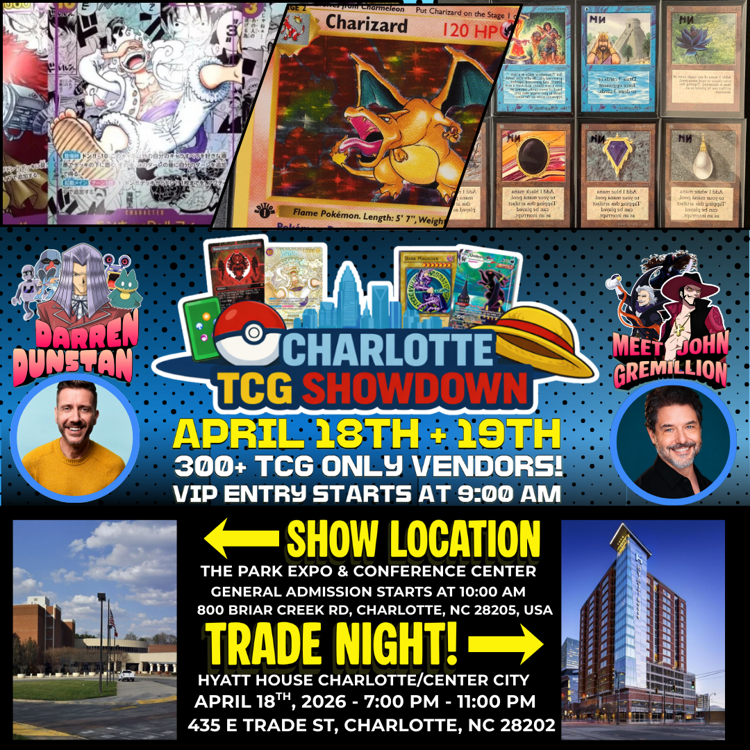 The Charlotte TCG Showdown is a large-scale trading card convention bringing together collectors, vendors, and hobby enthusiasts from across the Southeast. Hosted by Pow Productions, the event focuses on trading card games and collectibles, offering attendees the opportunity to buy, sell, trade, and connect with the hobby community.