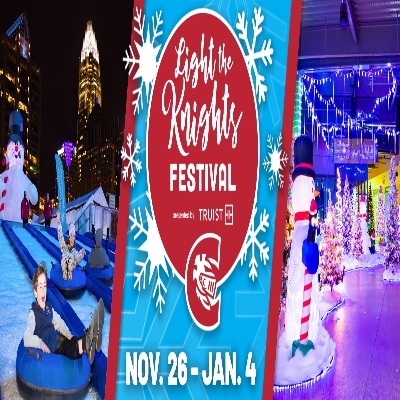 The 6th Annual Light the Knights Festival, together with Truist, is coming soon at Truist Field. Enjoy ice skating, snow tubing, shopping, holiday treats, tens of thousands of lights, decor, and more. It’s everything you need for a fun-filled family day out.